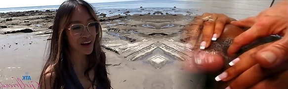 Busty asian masseuse tugs customer on spycam