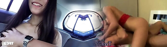 Pretty Chinese schoolgirl has sex in public in her guy car