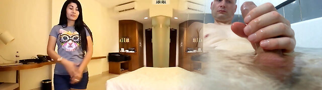 Hot chubby mature Korean wife faps me off before missionary sex