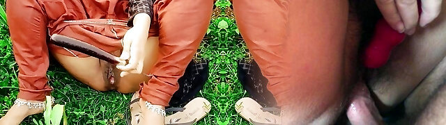 Beautiful housewife having sex with eggplant in her pussy. In the mustard garden.outdoor bang-out.