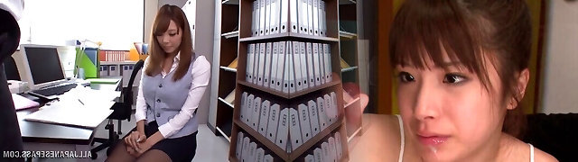 Japanese office girl gives a suck off and a footjob