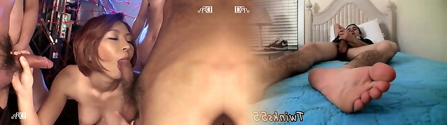 Petite Asian and ginger-haired take cocks up their tight assholes