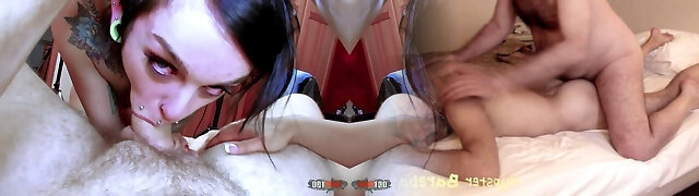 Milf asian babe gets shagged by a emo girl and a brutal dude