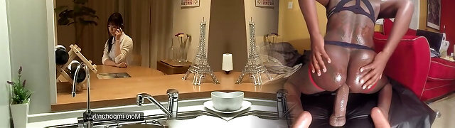 Ebony Girl Bareback Sex with Chinese Stud