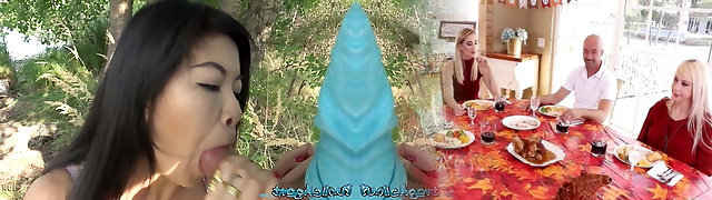 Man is going shock Asian lady with his naked cock