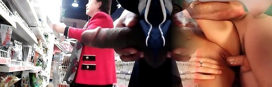 Buck flashes Miss Wong horny Asian granny at the shop