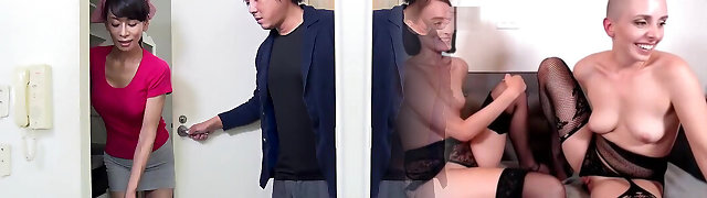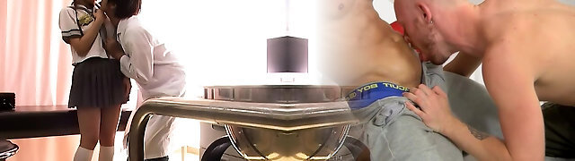 Japanese cougar slut gives her snatch to her husband's coworker at dinner time!