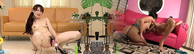 Riana Natsukawa has phat funbags and hairy cunt oiled and a