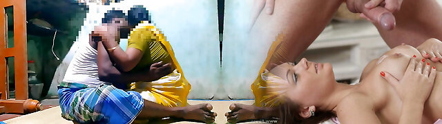 Asian teen nurse fucks and sucks ample black beef whistle in front of cuckold