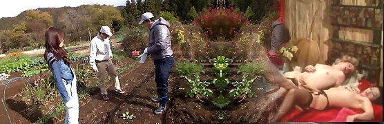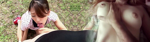 Asiatin haben Gruppensex im freien