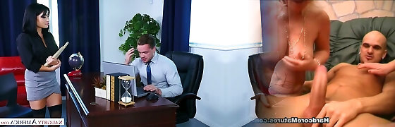 Lusty office lady Asa Akira shares intense rod right at work (FFM)