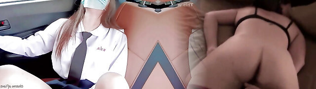 Young girl in school uniform masturbates in car