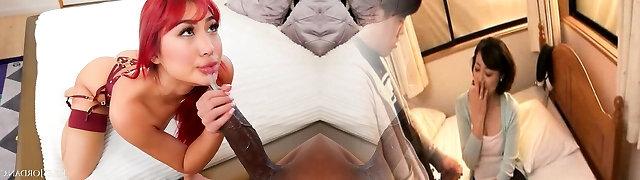 Redhead Japanese slut Mina doesn't need more than his black dick