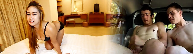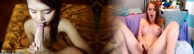 Petite Asian and ginger-haired take cocks up their tight assholes