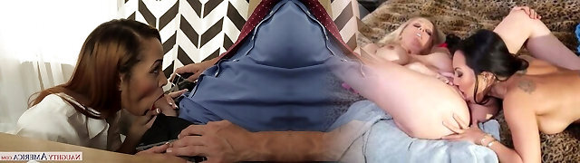 Ebony, Japanese and Redhead vagina fuck foursome starring May Thai, Samantha Cruz, Lya Cute