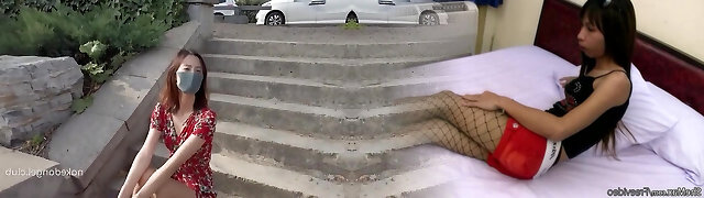 Chinese redhead teasing with her lingerie and getting rammed by BBC