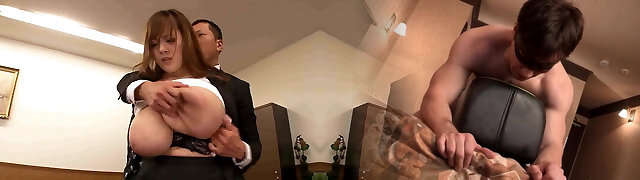 Fat Boss In Reserved Asian Big Tits Wifey Fucks To Secure Husbands Promotion