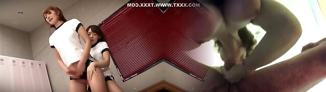 Japanese nymph likes to play with her sex toys before fucking two cocks as she likes to feel very dirty