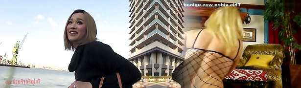 Slutty busty blonde tranny Thais Anderson gets bare before good doggy