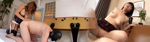 Asian Lesbian slaves strapon sex training