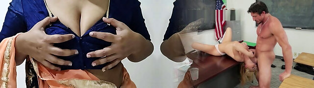 The village girl, thrilled by lust, opens her bra and tight clothes, presses her tits nips and does role play and fucks her.