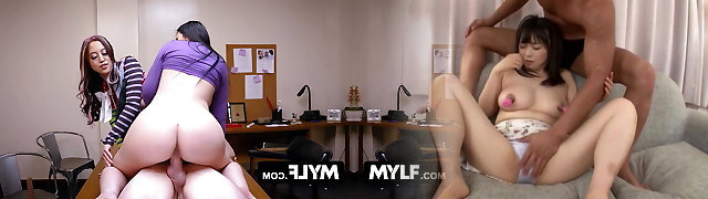 Busty Asian cougar gets spoiled by 2 younger cocks