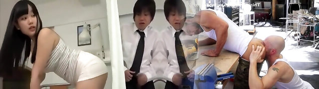 Uniformed Asians Get Plaything