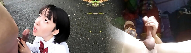 Asian school blowjob with slutty sandy-haired taking messy facial