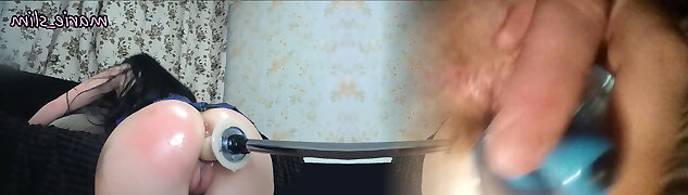 Giggling Japanese beauty is so happy to insert dildo into fuckbox