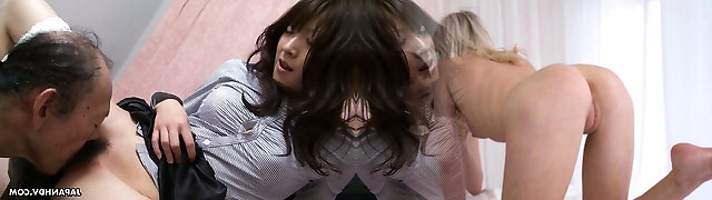Horny stud cannot miss a chance to lick hairy puss of lewd Miku Sachi