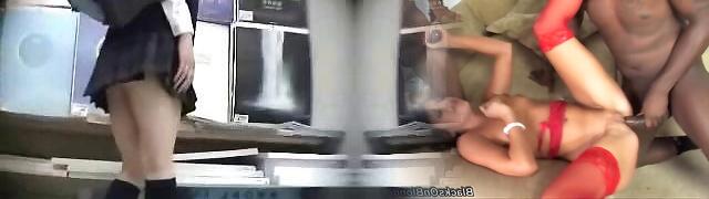 Hardcore 3some with chinese schoolgirl vibed upskirt