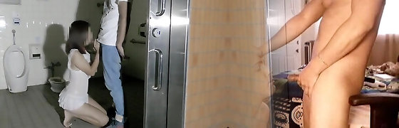 Hot Korean couple fucks in public shower - livejizzsex.com